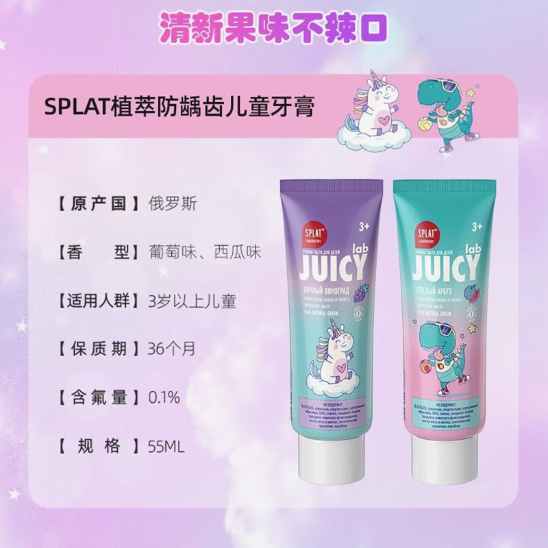 首页> 个护健康> 母婴用品> SPLAT植萃防龋齿儿童牙膏55ml/支(多口味可选) 流光西瓜红色55ml/支