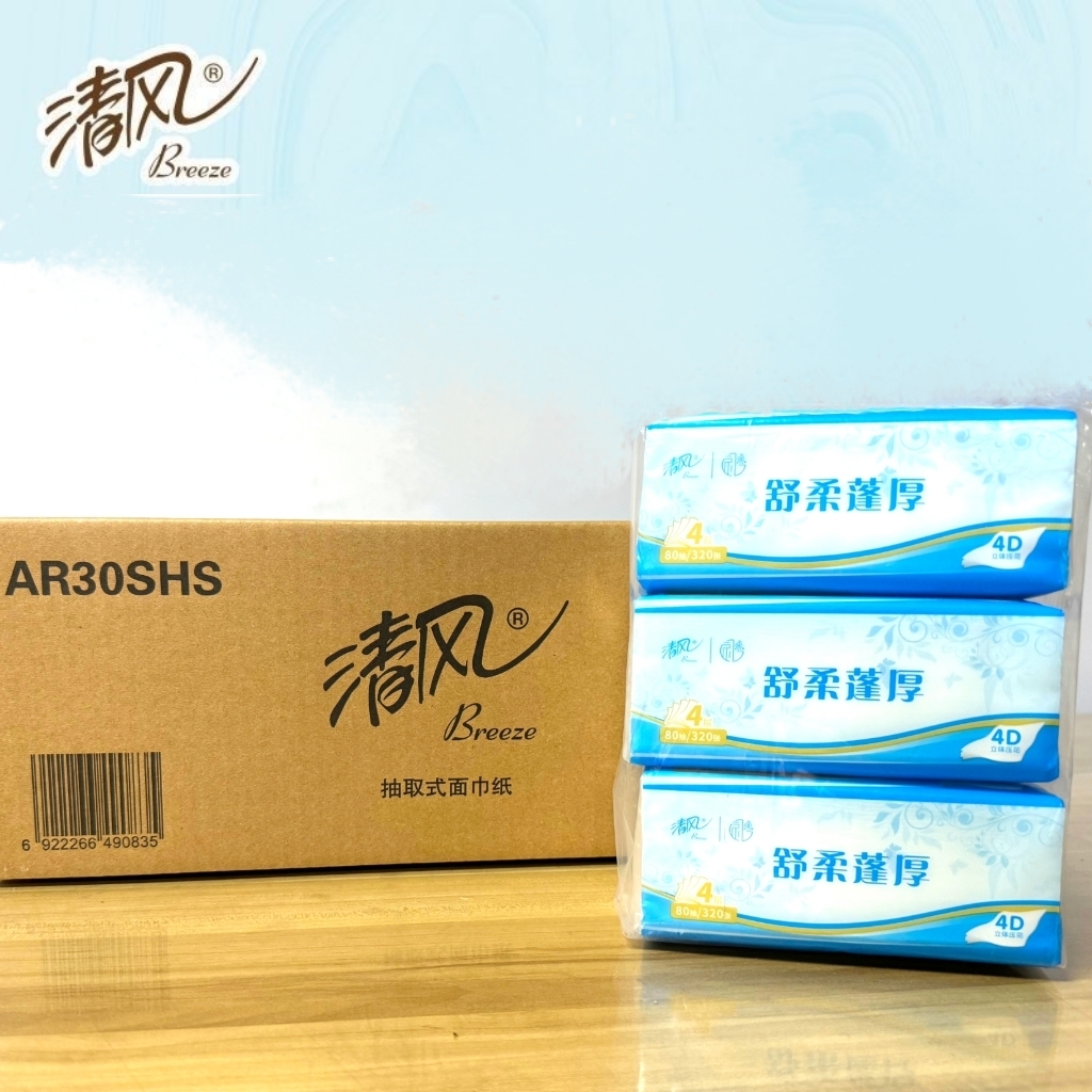 • 清风舒柔蓬厚4层80抽4D立体印花抽取式面巾纸  AR30SHS   24包/箱