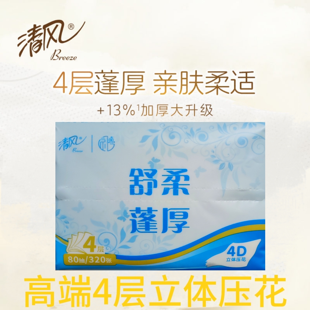 清风舒柔蓬厚4层80抽4D立体印花抽取式面巾纸 AR30SHS 24包/箱