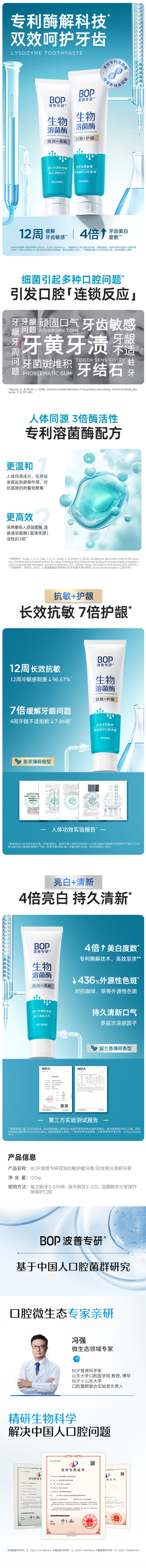 BOP波普专研双效牙膏120g/支 亮白清新牙膏120g/支