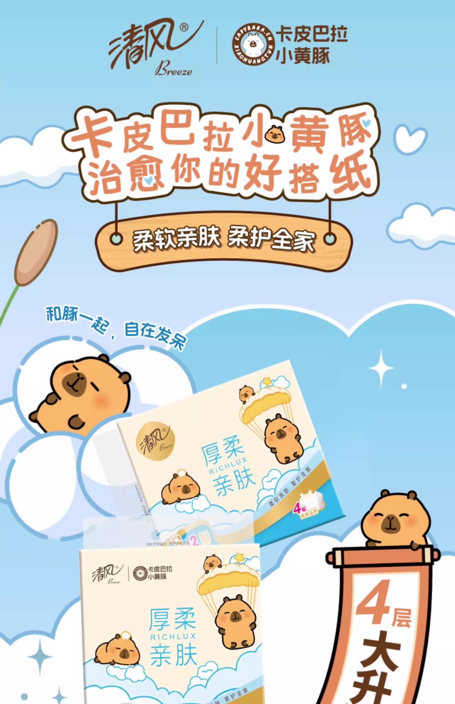 清风卡皮巴拉联名抽纸M码4层90抽卫生纸 BRA1MH 10包/提