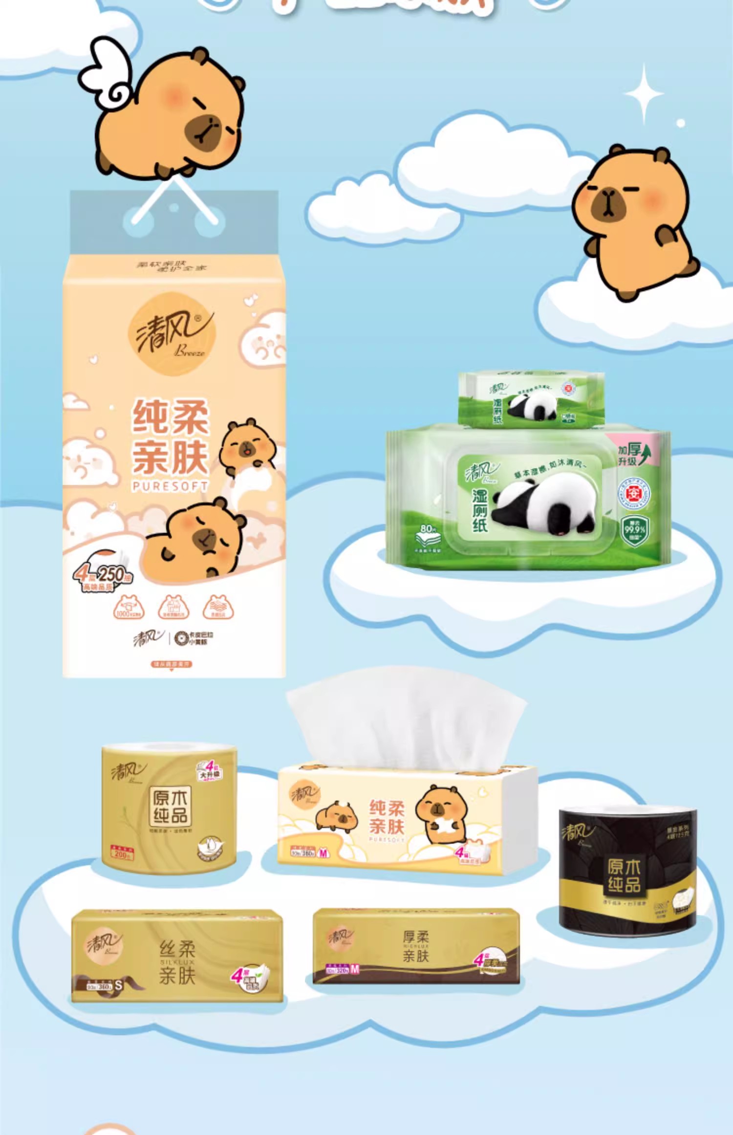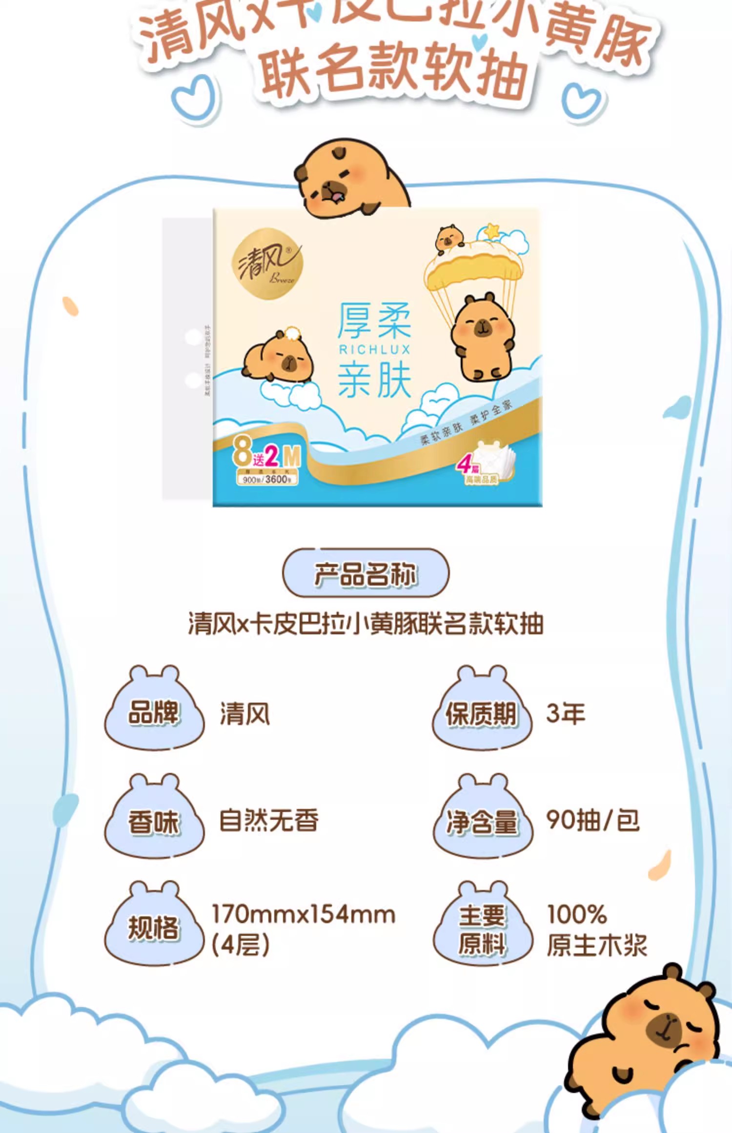 首页> 日用百货> 纸品> 清风卡皮巴拉联名抽纸M码4层90抽卫生纸 BRA1MH 10包/提