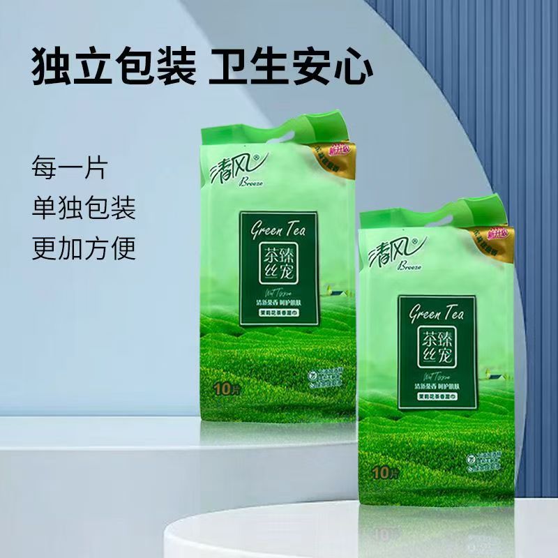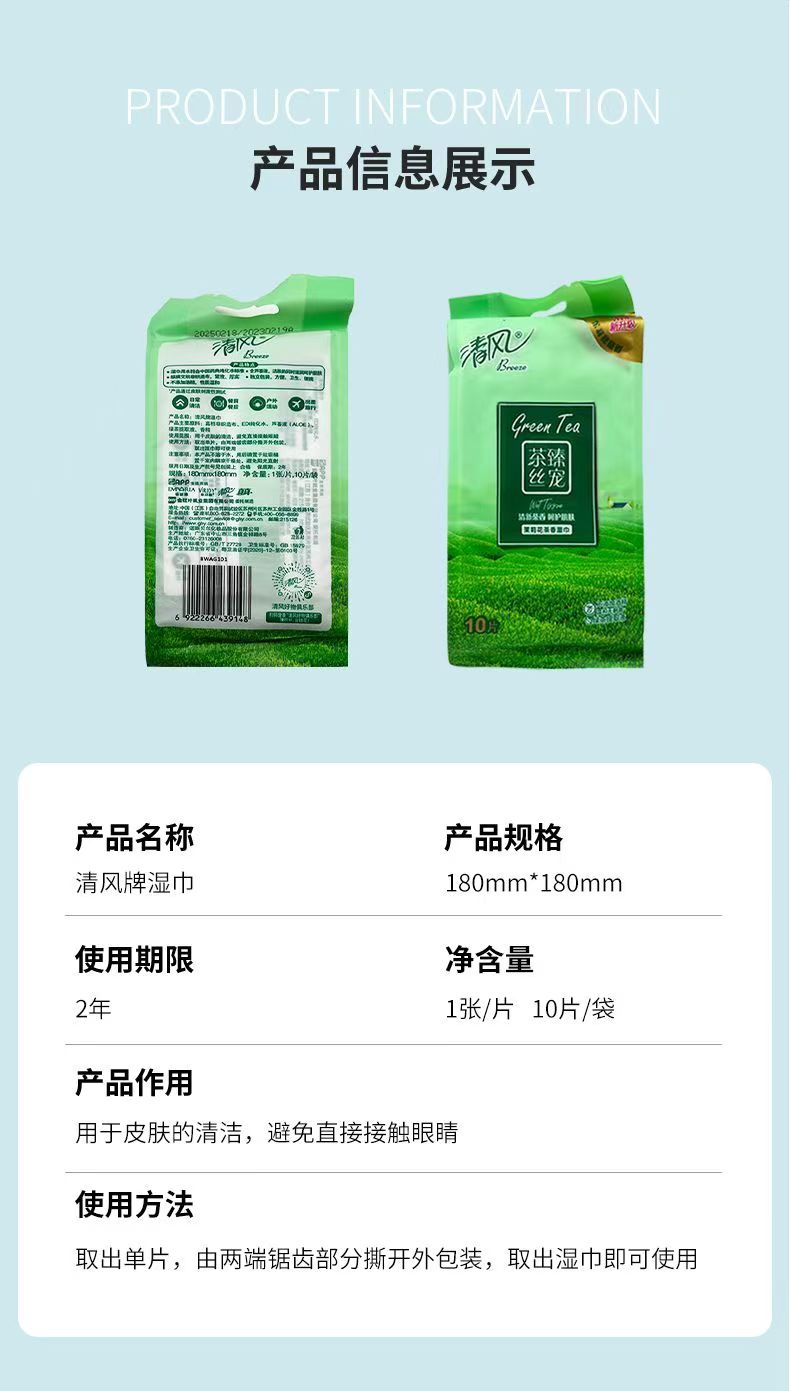 清风茶臻丝宠茉莉花茶香湿巾10片装 BWAG101 10包/提