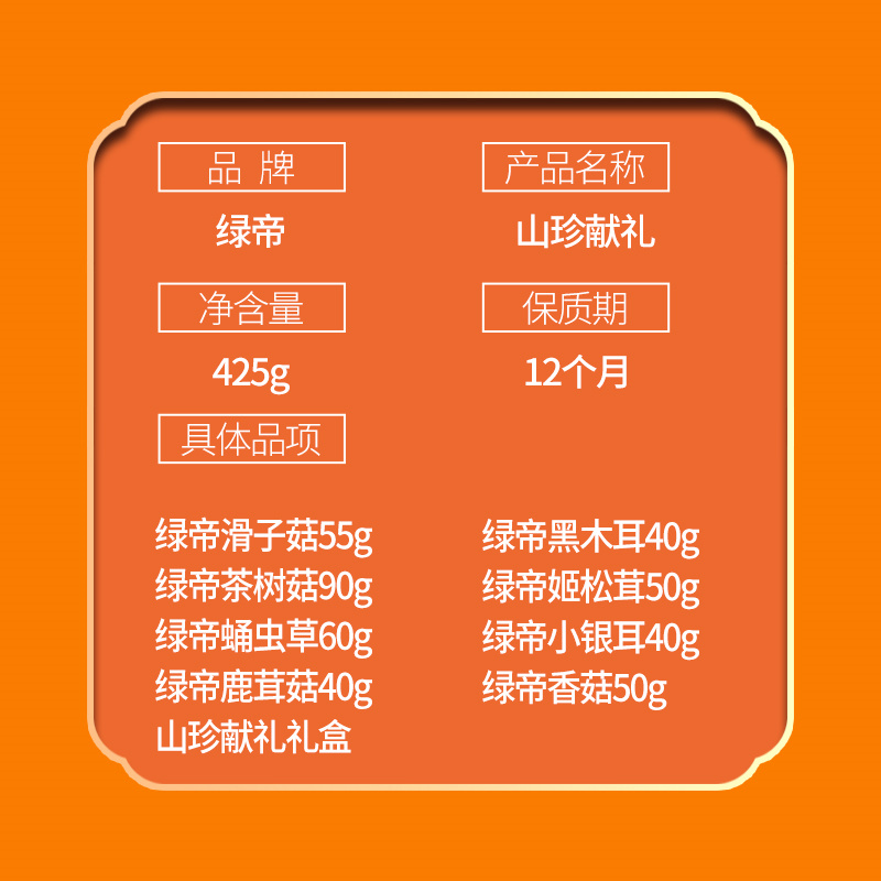 绿帝山珍献礼菌菇礼盒425g